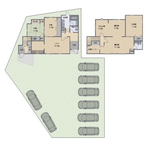 建物面積1F:86.95㎡ 2F:81.15㎡   1F:2F 168.95㎡(50.85坪)