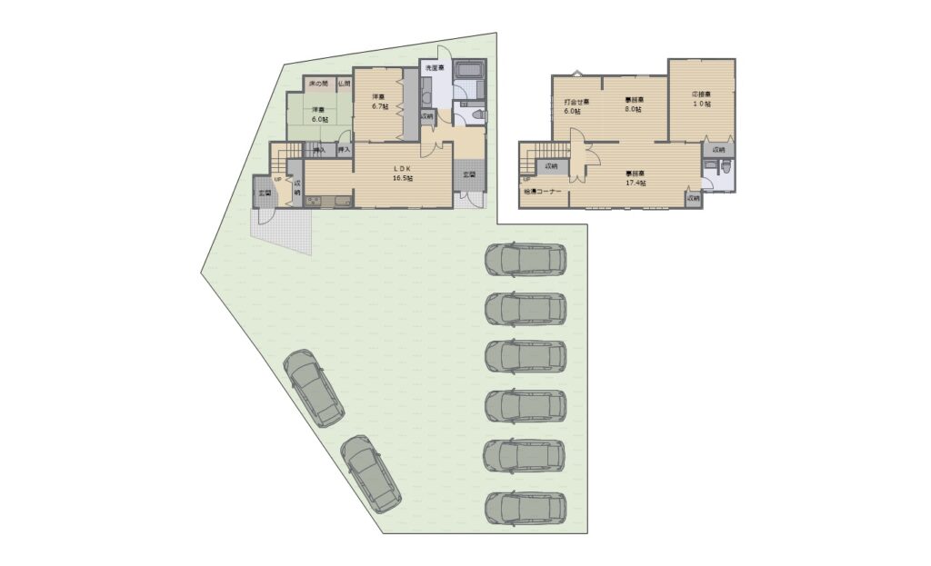 建物面積1F:86.95㎡ 2F:81.15㎡   1F:2F 168.95㎡(50.85坪)